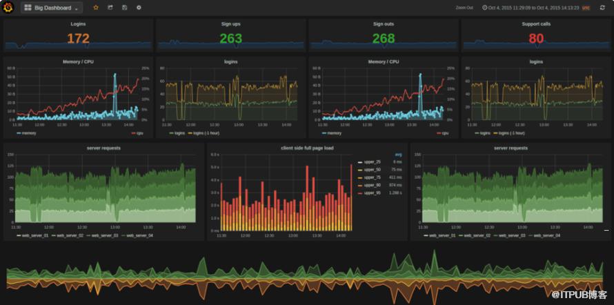通过支持多种数据源(如:Prometheus、Graphite、InfluxDB、Elasticsearch......等),实时监控系统状态、应用性能、和业务指标。