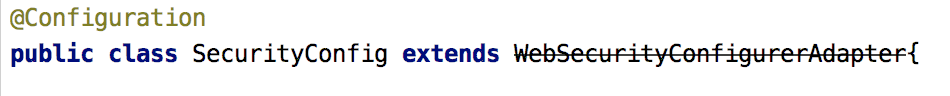 @Configurationpublic class SecurityConfig extends WebSecurityConfigurerAdapter{