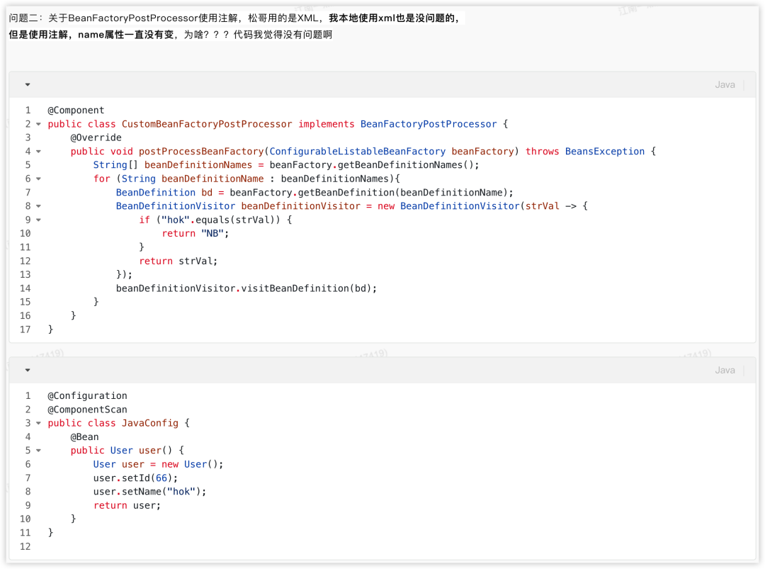简介来源:江南一点雨有小伙伴在学习 Spring 源码视频的时候,看了松哥讲的 BeanFactoryPostProcessor 的用法之后,提出了这样一个问题:我来跟大家补充一下这个问题的上下文:我讲了