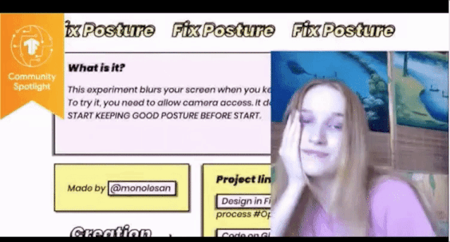 Olesya为这个项目专门做了一个网站,小姐姐表示这个网站不会窃取网友的隐形数据,想体验这款坐姿监督工具的坐姿不对小伙伴可以猛戳: