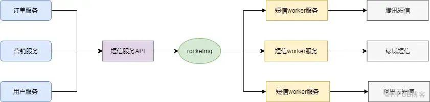 服务端的设计可以非常灵活,笔者曾经重构过一个短信平台服务,架构图如下: