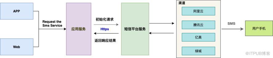 前端调用应用服务接口发送短信 ;应用服务收到短信请求后,调用 SDK 方法根据模版发送短信;短信平台服务收到请求,根据路由算法选择配置的渠道(比如阿里云、腾讯云)发送短信;短信成功发送到用户手机 。2 客户端模式