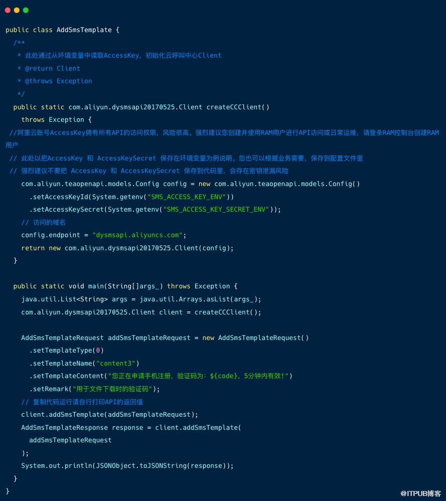 客户端模式是非常简单的模式,云服务器很多短信服务提供商会提供成熟的 SDK ,业务系统只需要添加 SDK 依赖以及相关配置,就可以调用 SDK 提供的方法发送短信。