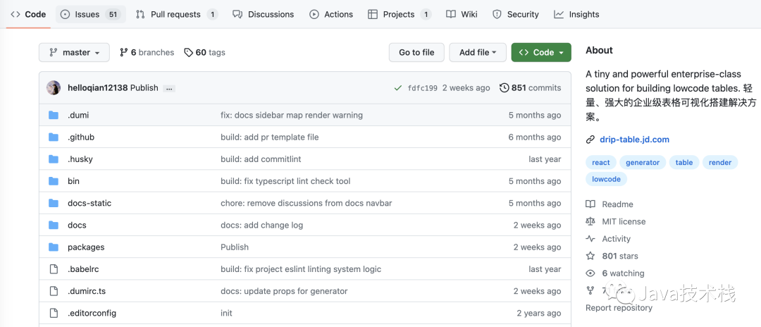简介来源:Java技术栈今天推荐一款京东开源的、高效的企业级表格可视化搭建解决方案:DripTable!DripTable 是京东零售推出的一款用于企业级中后台的动态列表解决方案,项目基于 React 和