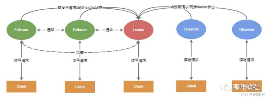 每个Server在内存中存储了一份数据,Client的读请求可以请求任意一个Server。ZooKeeper启动时,将从实例中选举一个leader(Paxos协议)。Leader负责处理数据更新等操作(ZAB协议)。一个更新操作成功,当且仅当大多数Server在内存中成功修改 。通过上面这种方式,ZooKeeper保证了高可用性以及数据一致性。
