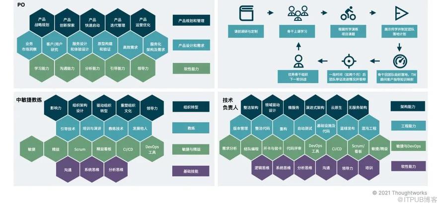 (图9:阶段性落地实践示例) 第6步:培养关键角色能力产品级敏捷的实践活动能在团队中持续的推进、在组织中进行规模化的推广,关键角色的能力培养至关重要。产品级敏捷落地的关键角色有产品经理、敏捷教练、技术负责人等,需要为他们定制能力模型,进行能力差距分析,开展体系性的培训赋能,以推进产品级敏捷的顺利落地。 Thoughtworks通过训战的模式对关键角色进行赋能,培训与实战演练相结合能够促进实践技能更好的掌握与吸收。同时配套产品经理、CAC敏捷教练的认证机制来评估关键角色的胜任力。