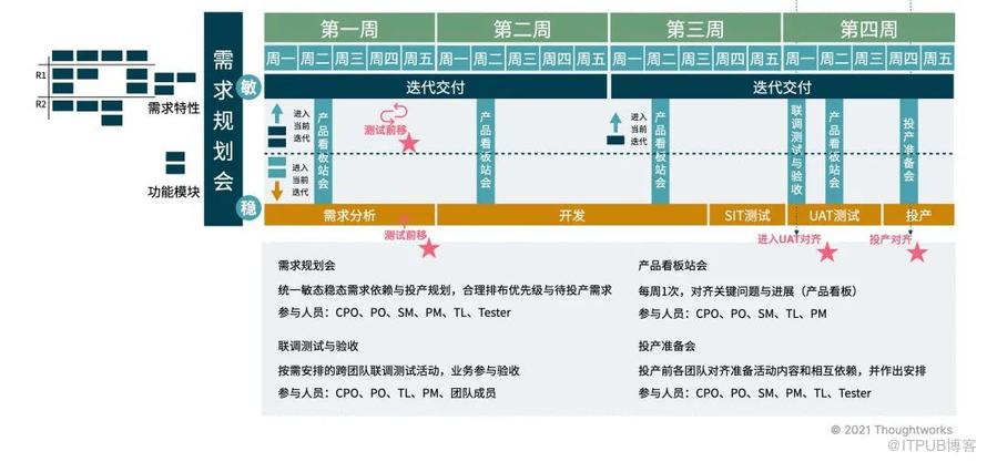 (图7:业技融合协作活动)稳敏协作:对齐稳态团队、敏态团队的跨团队协作机制,定义跨团队开展的活动与参与角色,明确需对齐的重要时间点。
