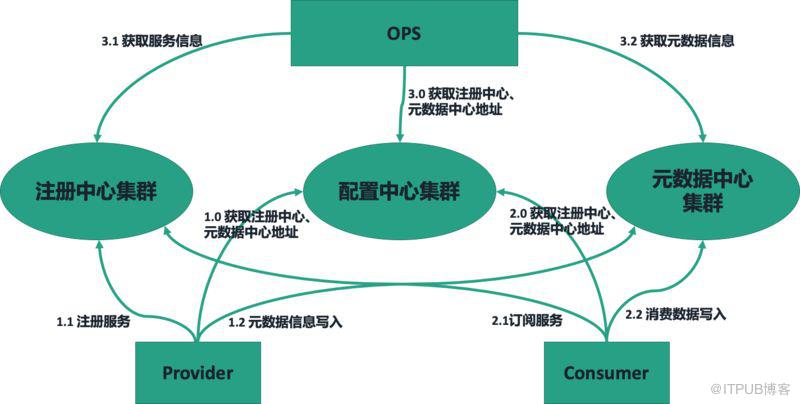 期望的使用方式:Provider 先去配置中心里获取注册中心的地址和元数据中心地址,再根据拿到的注册中心地址去对应的注册中心注册服务,根据拿到的元数据中心地址写入元数据信息到对应的元数据中心 Server。Consumer 和 OPS 也是类似的。