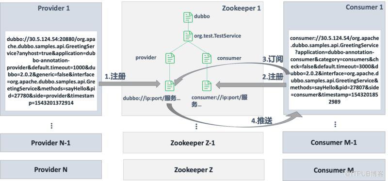 Provider 会把一长串 URL(dubbo://xxx 的字符串)写入到 Zookeeper 里面某个节点里面去。