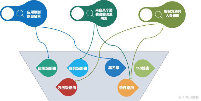 路由规则路由规则组合Dubbo 路由规则,按照覆盖范围可分为应用级别,服务级别,方法级别路由规则;按照功能纬度,可以分为黑名单,条件路由 ,TAG 路由规则。大部分路由需求都是可以通过组合来实现的,如应用级的黑名单可以通过应用级别 + 黑名单路由规则方式组合。