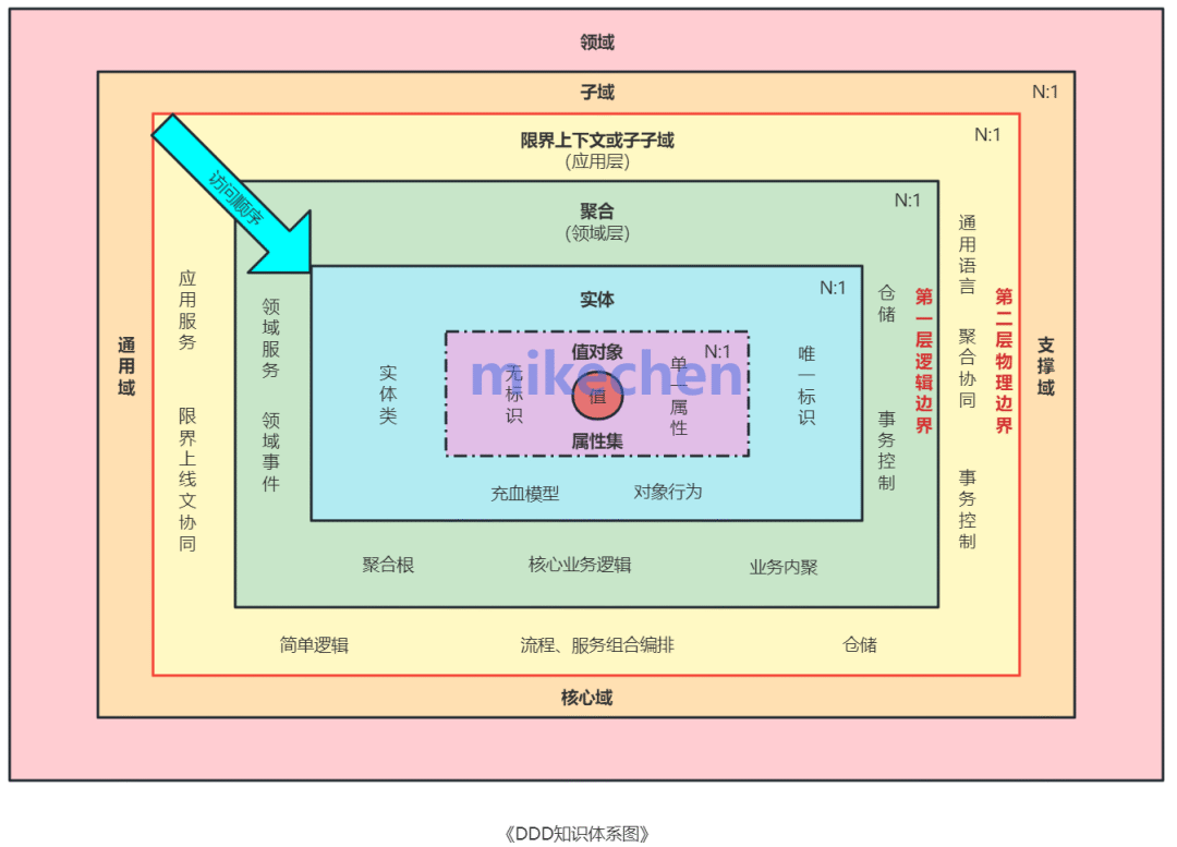 指业务领域的知识和规则,DDD 关注于将这些领域知识映射到软件模型中,以便更好地理解业务需求。