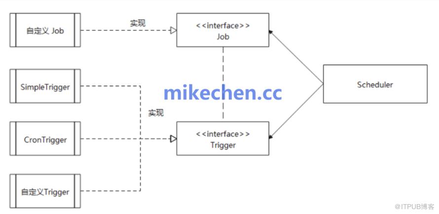 Trigger(触发器):Trigger 是用于触发作业执行的组件,可以根据预定的时间表和条件触发作业的执行,包括简单触发器、Cron 触发器等。